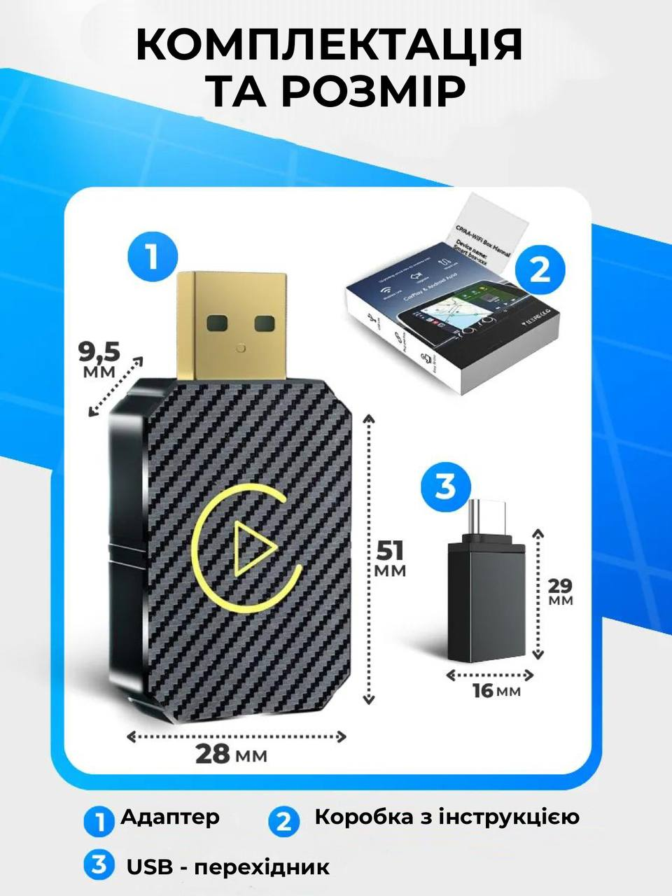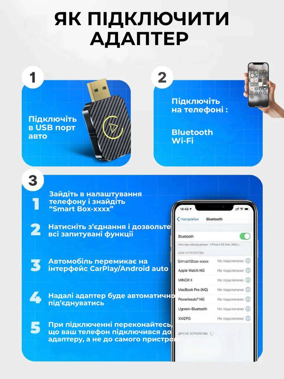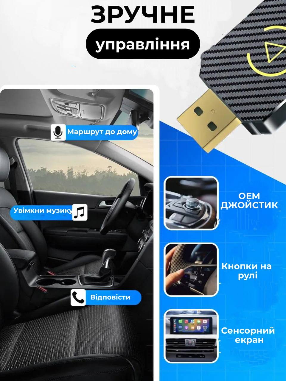 Наш адаптер-Carplay дозволяє з’єднати ваш телефон з мультимедійною системою та використовувати функції телефону на екрані автомобіля