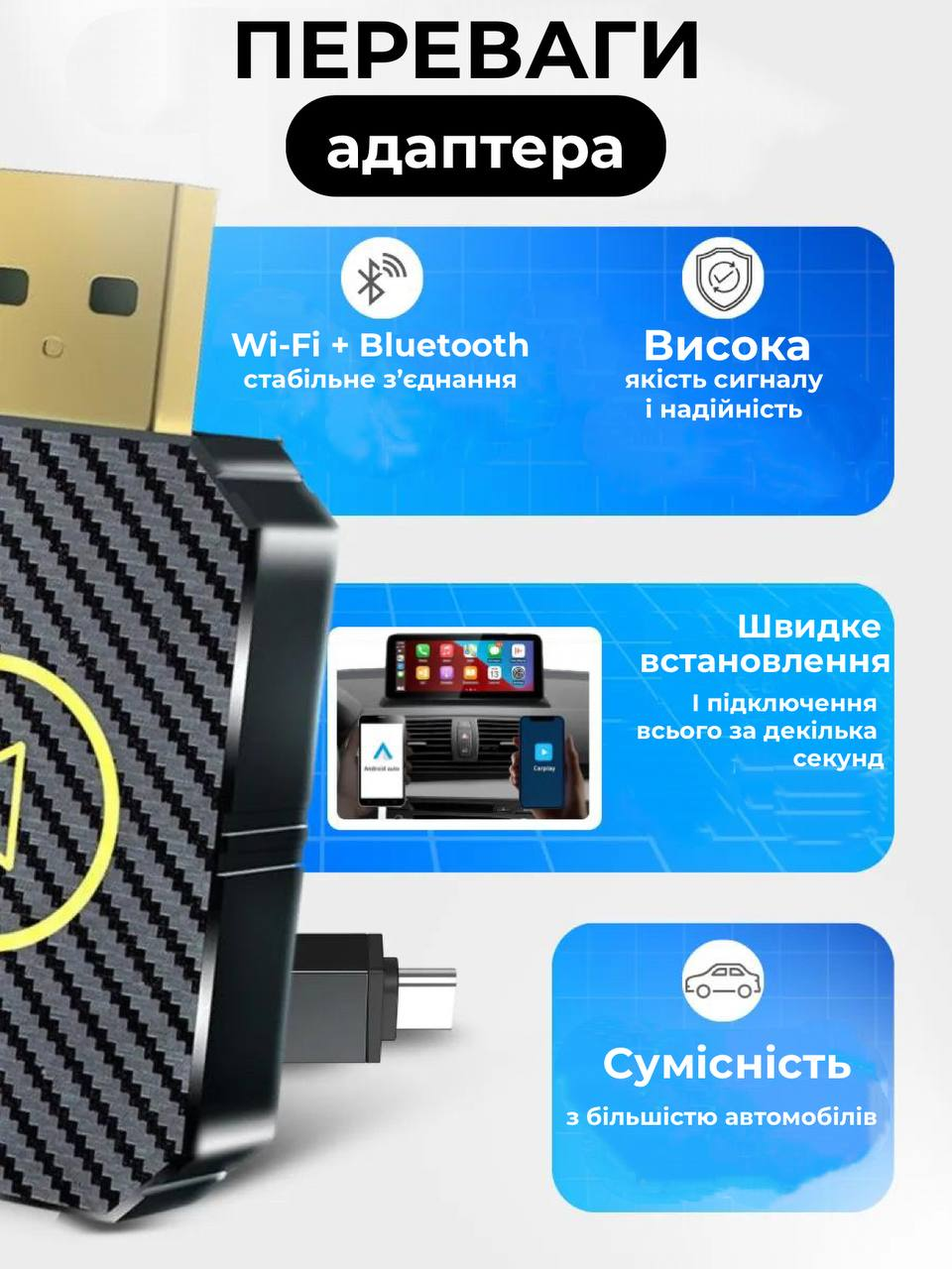 Використання Wi-Fi 5 ГГц і Bluetooth 5.0 забезпечує швидке та безперебійне підключення без затримок чи розривів, що гарантує плавну роботу CarPlay навіть у русі.
